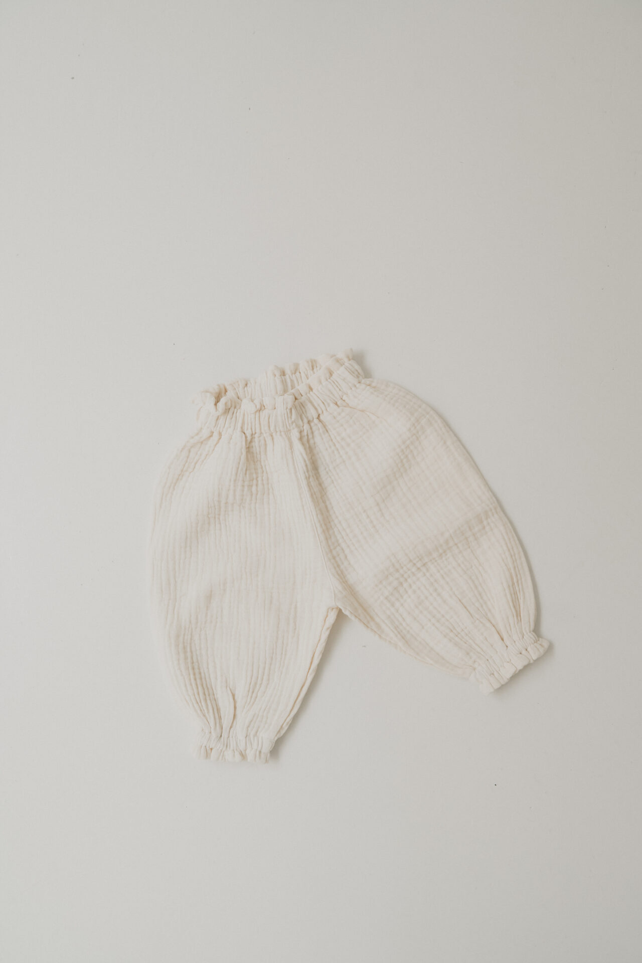 柔らかなガーゼ素材とバルーンシルエットが可愛いパンツです。 優しいオフホワイトの色味は、ご家族でのリンクコーデも楽しめるのがおすすめポイントです。 サイズ:90cm相当(パンツ丈38cm / ウエスト約36cm) ※韓国サイズのため、日本サイズと若干異なる場合があります。