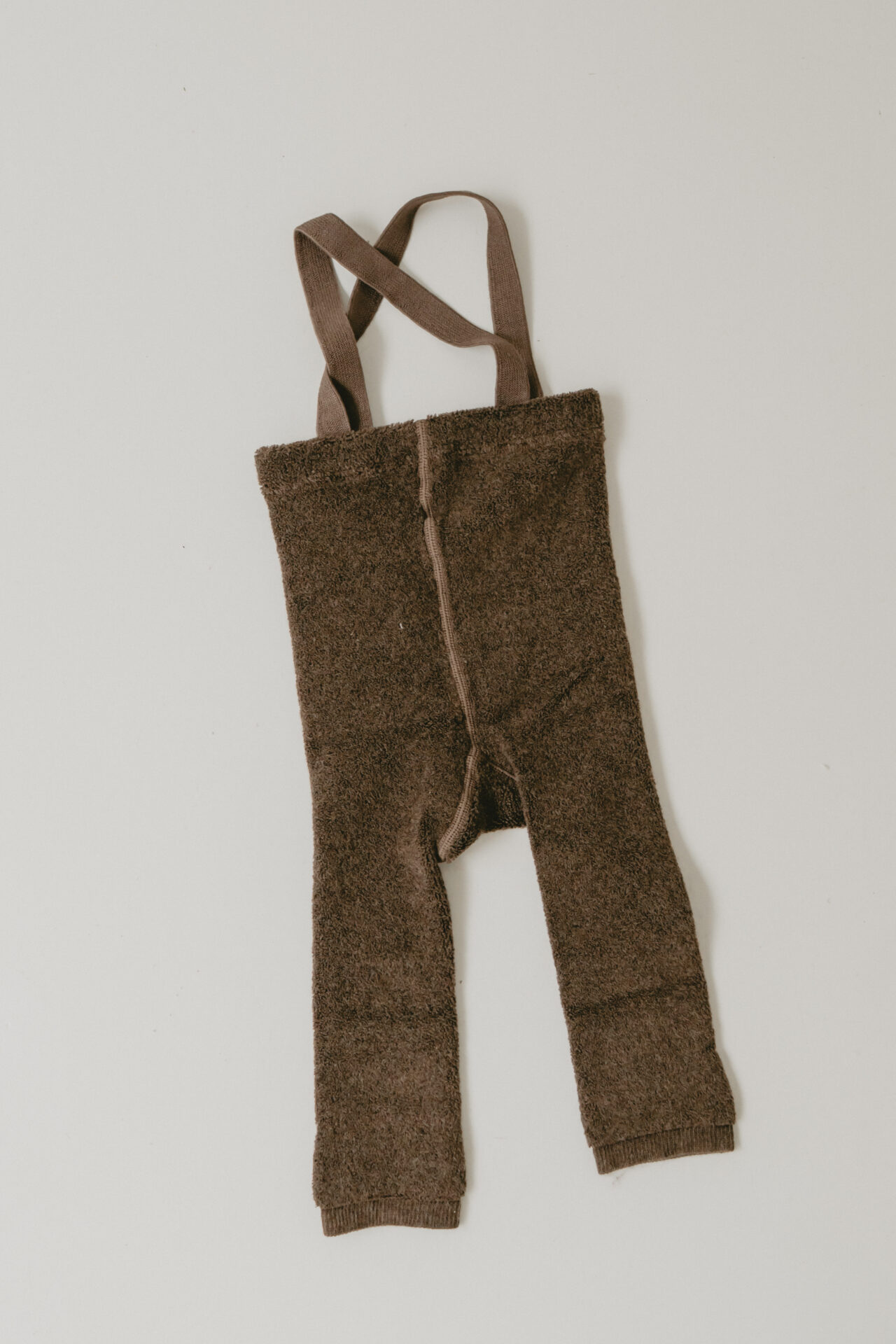 パイル素材の優しい手触りとサスペンダーデザインが可愛いパンツです。 温かみのあるブラウンの色味で、トップスの組み合わせしやすいのもおすすめポイントです。 サイズ:90cm相当(パンツ丈45cm / ウエスト約38cm) ※韓国サイズのため、日本サイズと若干異なる場合があります。