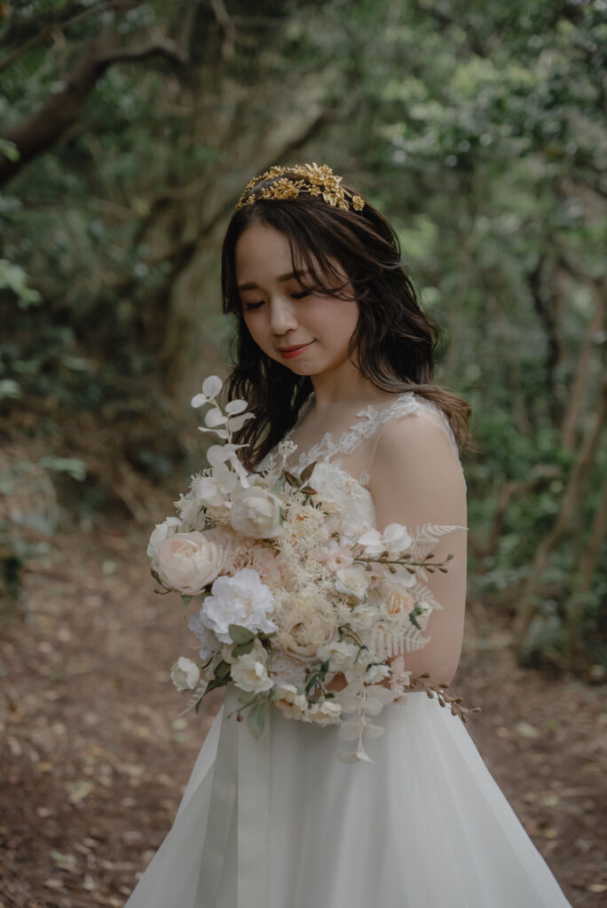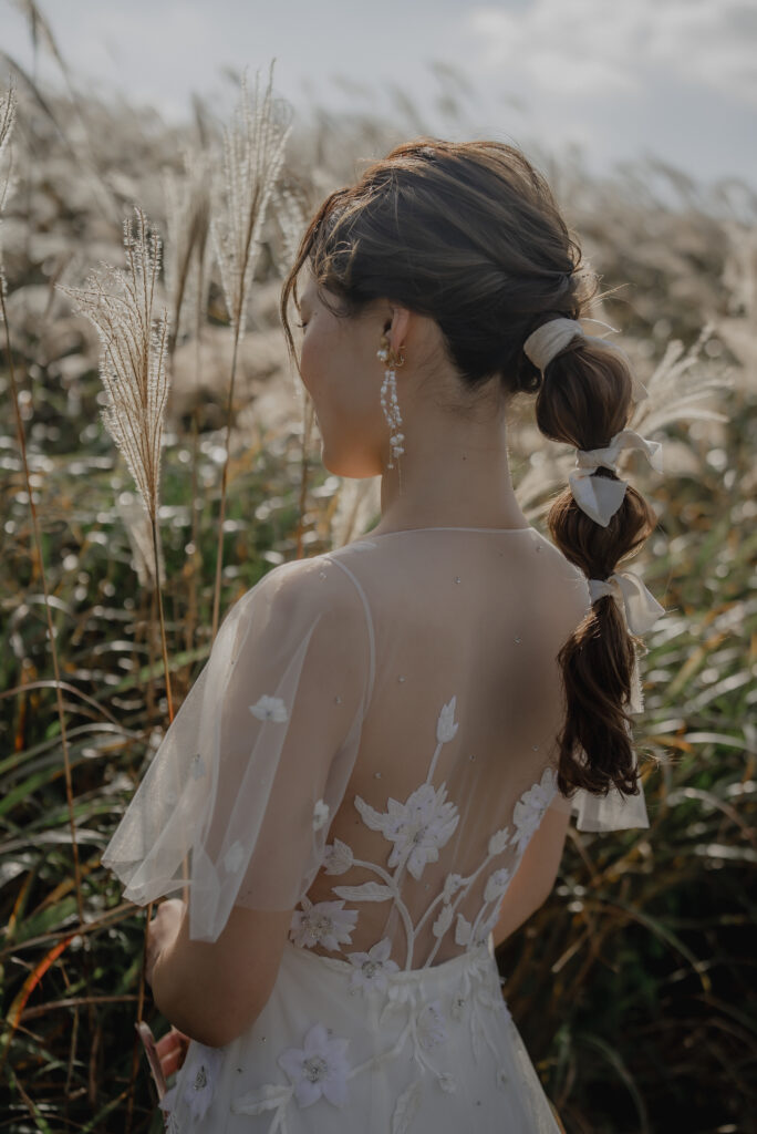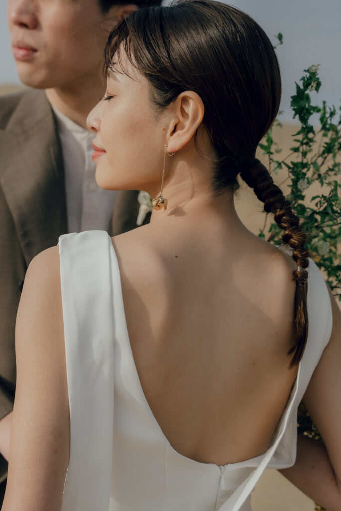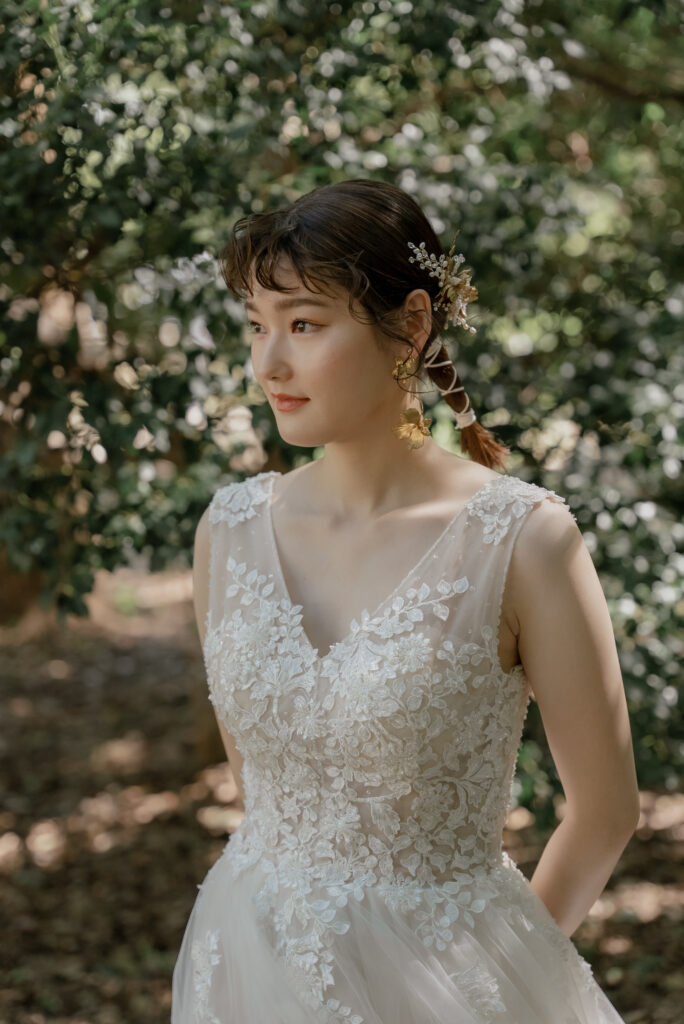 We deliver dress styling that is in harmony with the bride's personality, dress, and location and colors the photos. Our professional staff will wholeheartedly support you through careful counseling to ensure that your days are full of smiles. We will suggest many beauty ideas and techniques suitable for wedding dresses.