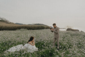 綺麗な砂浜に圧巻の佇まいの一枚岩。周りには草原も広がる、自然豊かな兵庫県京丹後市の「立岩」。秋も深まり冬の気配を感じるとある11月の午後。普段から笑顔がとっても素敵な明るいおふたり。そんな普段通りのキャラクターを生かして、砂浜を思いっきり走ってはしゃいでいただきました。