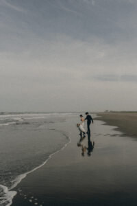 緑生い茂る森からどこまでも続く長い砂浜へ、まるで旅するように夏らしいロケーションを満喫しながら撮影を楽しみませんか♪ 1スタイル目は森の中、2スタイル目はビーチと、それぞれの場所に合わせた花嫁コーデ。纏うドレスと共にふたりの表情もより開放的に変化していきます。その場所ごとに生まれる物語を紡いでいくように、2つの表情を纏って特別な時間を重ねていく。