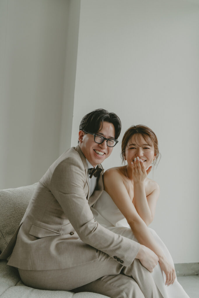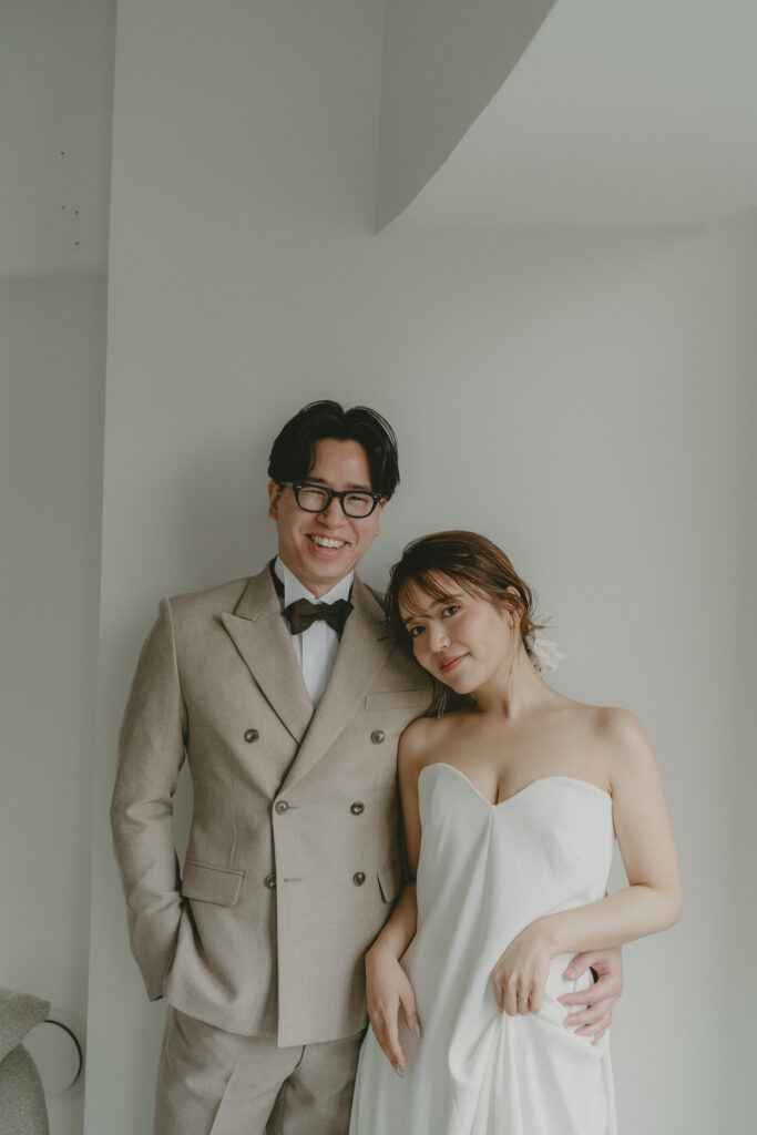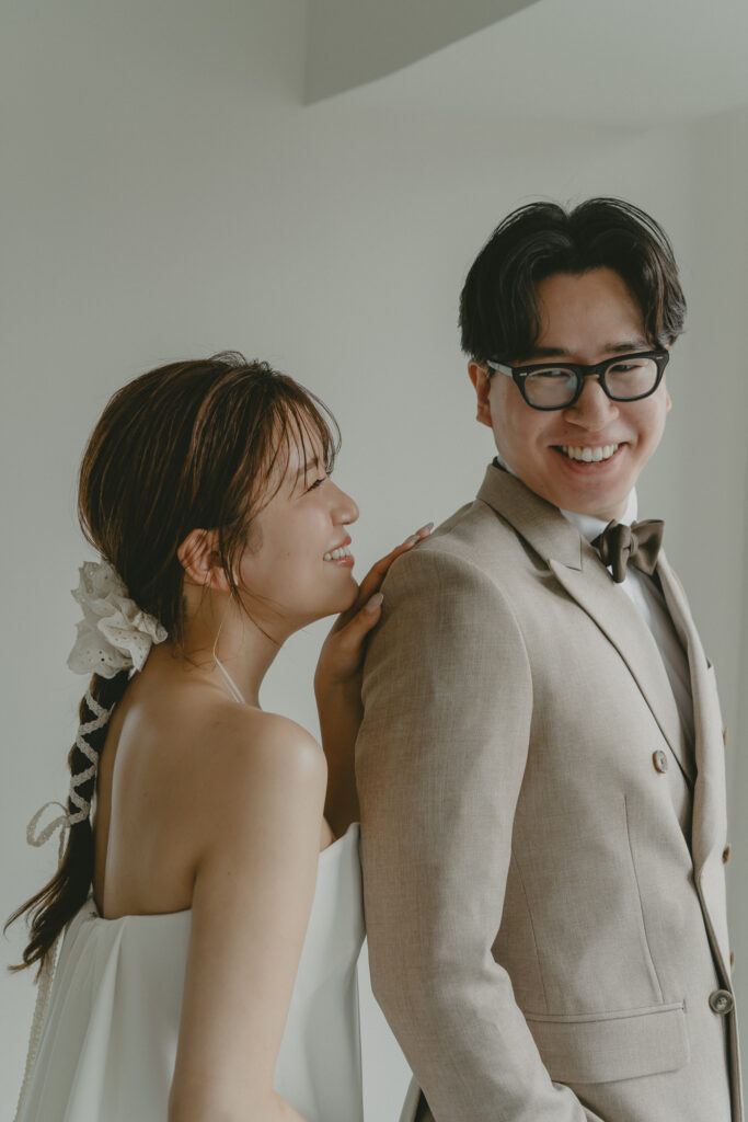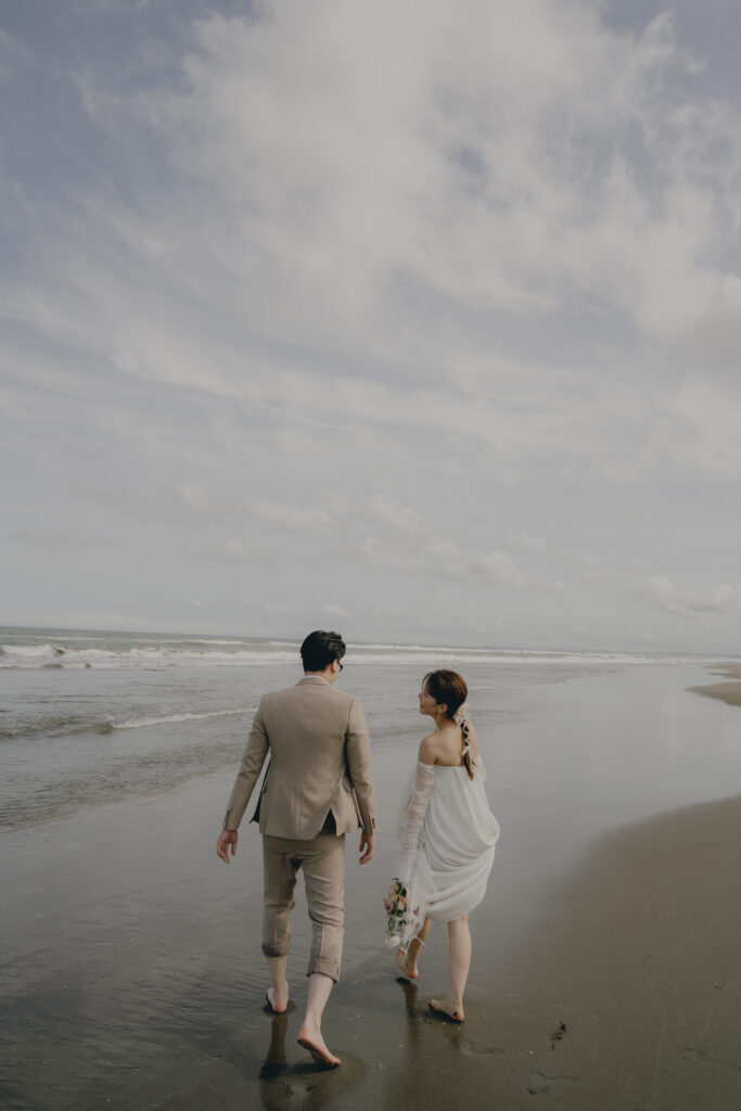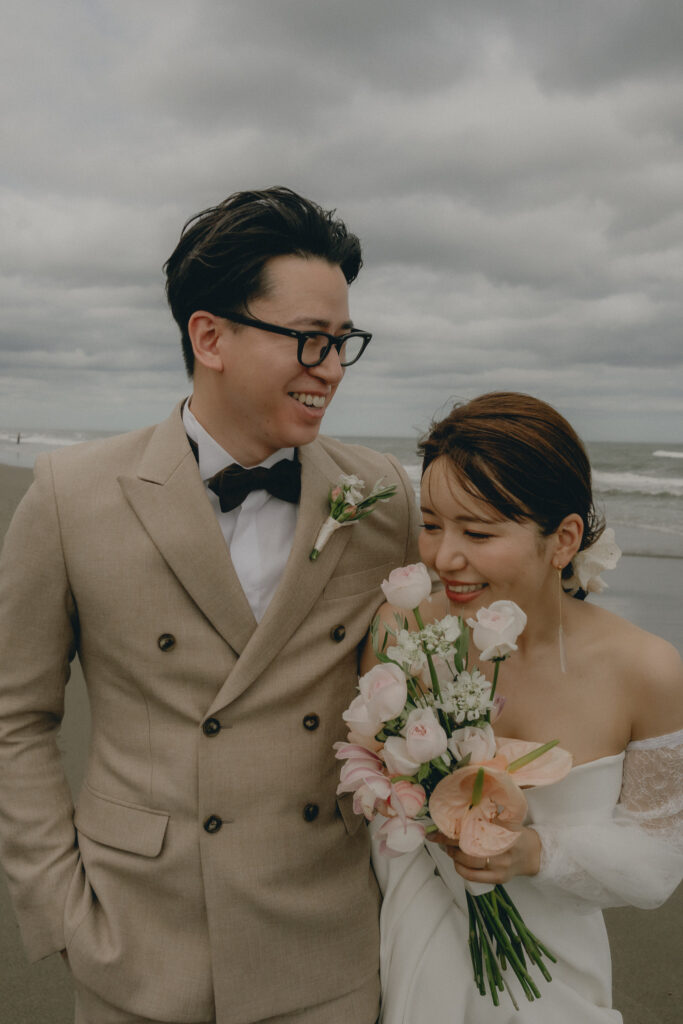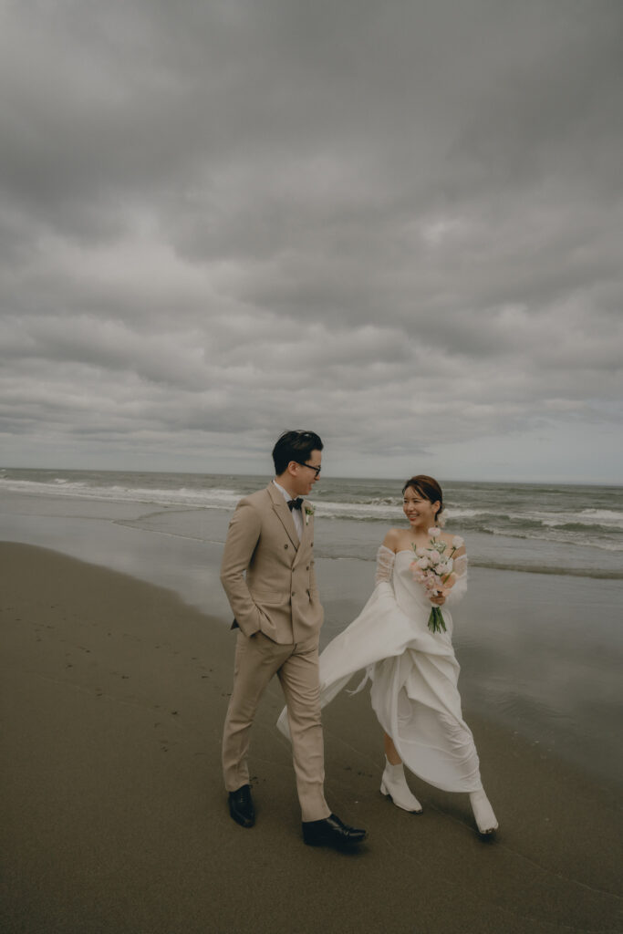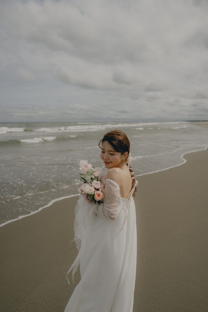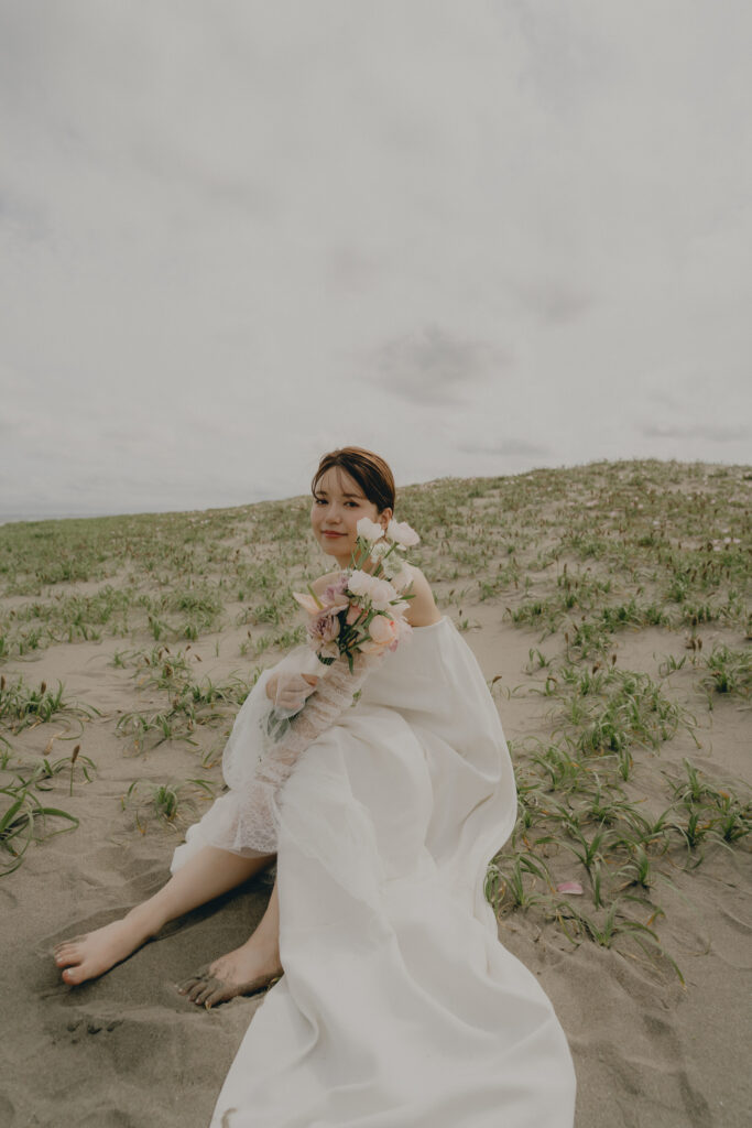 どこまでも続く長い砂浜から緑が深まる森林公園へ。2つのロケーションを踊るように巡りながら撮影が進みました。纏うドレスと共にふたりの表情もより開放的に変化し、その場所ごとに生まれる物語を紡いでいくように2人にとって特別な時間を重ねていきます。