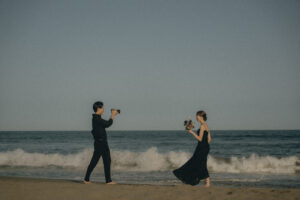 後半はドレスで作ったクリーンな印象から一転、波の中にしっかり入ることで、濡れた質感や動きのある表情が加わり、よりラフで解放感のあるシーンへと切り替わっていきます。